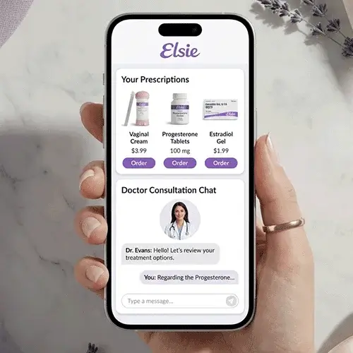 Same quality of care, without the waiting room. Elsie connects you with board-certified physicians who specialize in menopause and HRT. Your consultation is done online, your prescription is personalized to you, and your medication is shipped directly to your door. No driving, no scheduling weeks out, no sitting in an office for 10 minutes of face time.
